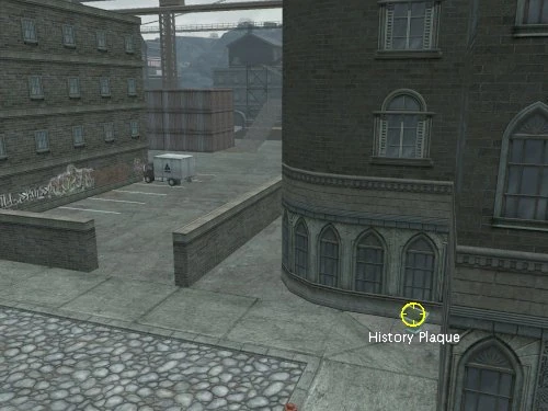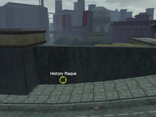 This plaque is in Grandville. It is 340 yard due east of the Spider City marker. It is in The Gutter neighborhood, just outside the wall around Spider City.